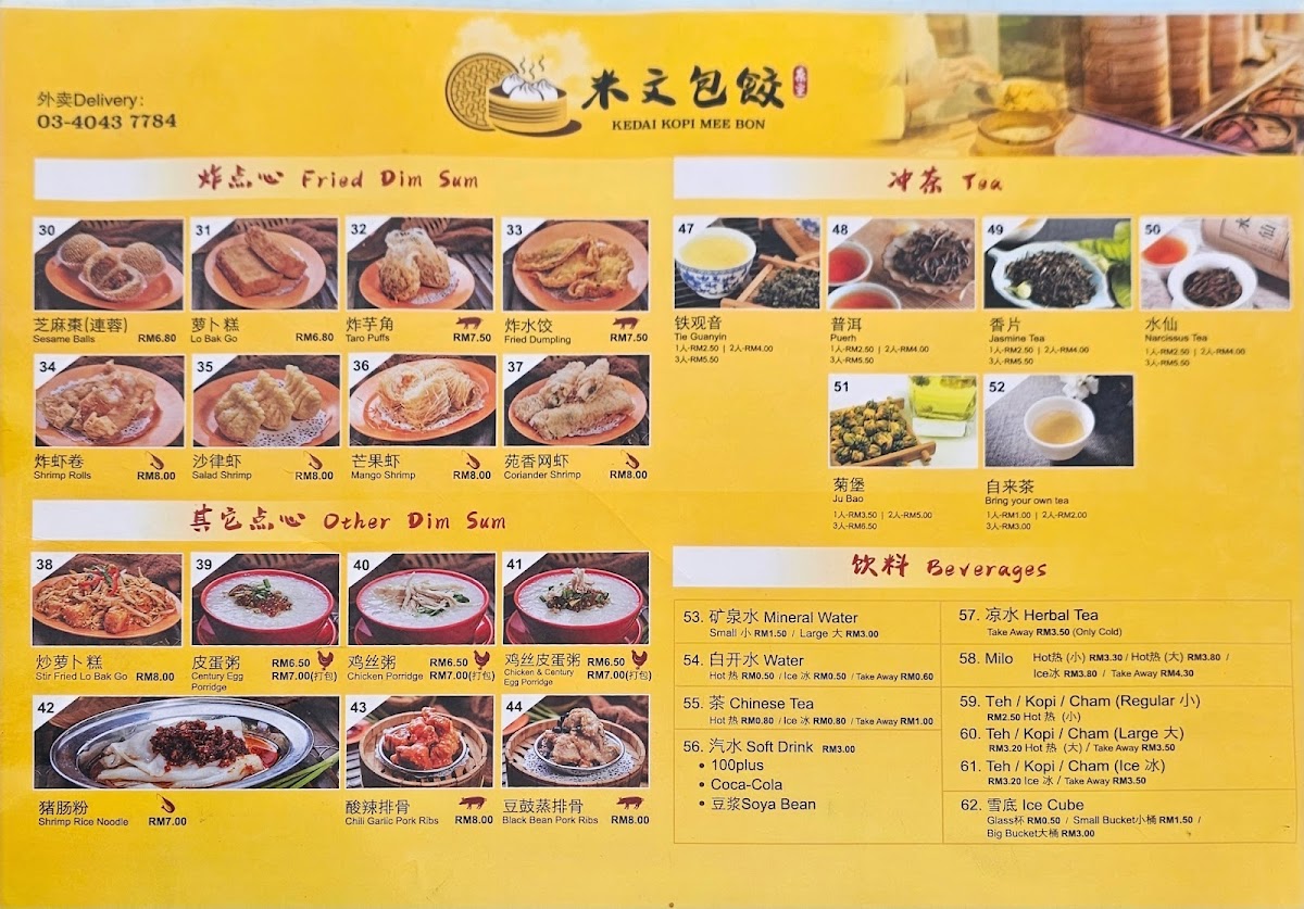 Welcome to Kedai Kopi Mee Bon, a hidden gem nestled in Taman Million, Kuala Lumpur. This dim sum restaurant boasts a menu filled with delightful offerings that cater to cravings at any hour, even past midnight.